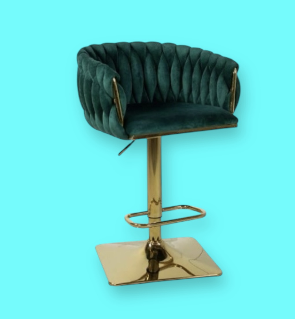 Banco estilo moderno hidraulico estructura cromada tapiz verde esmeralda velvet tejido