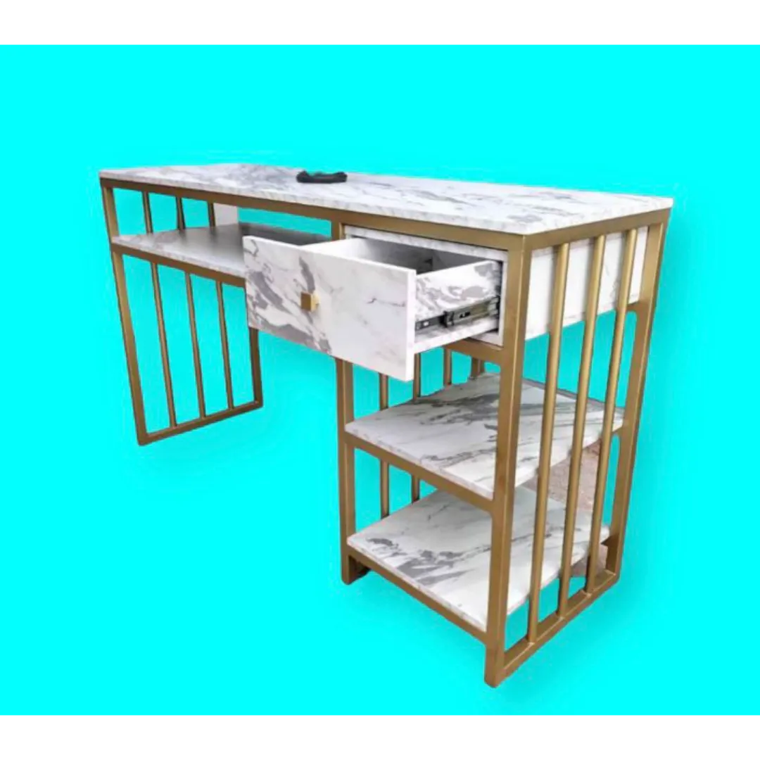 Herreria tubular repisa de melanina simulando mármol Medidas 1.20 largo x 80 altura x 45 ancho.