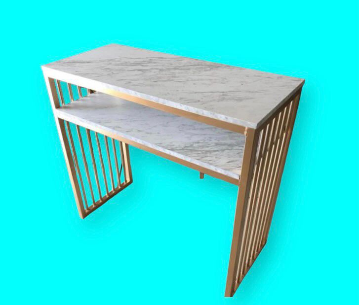 Mesa en herreria tubular con melanina simulando mármol.